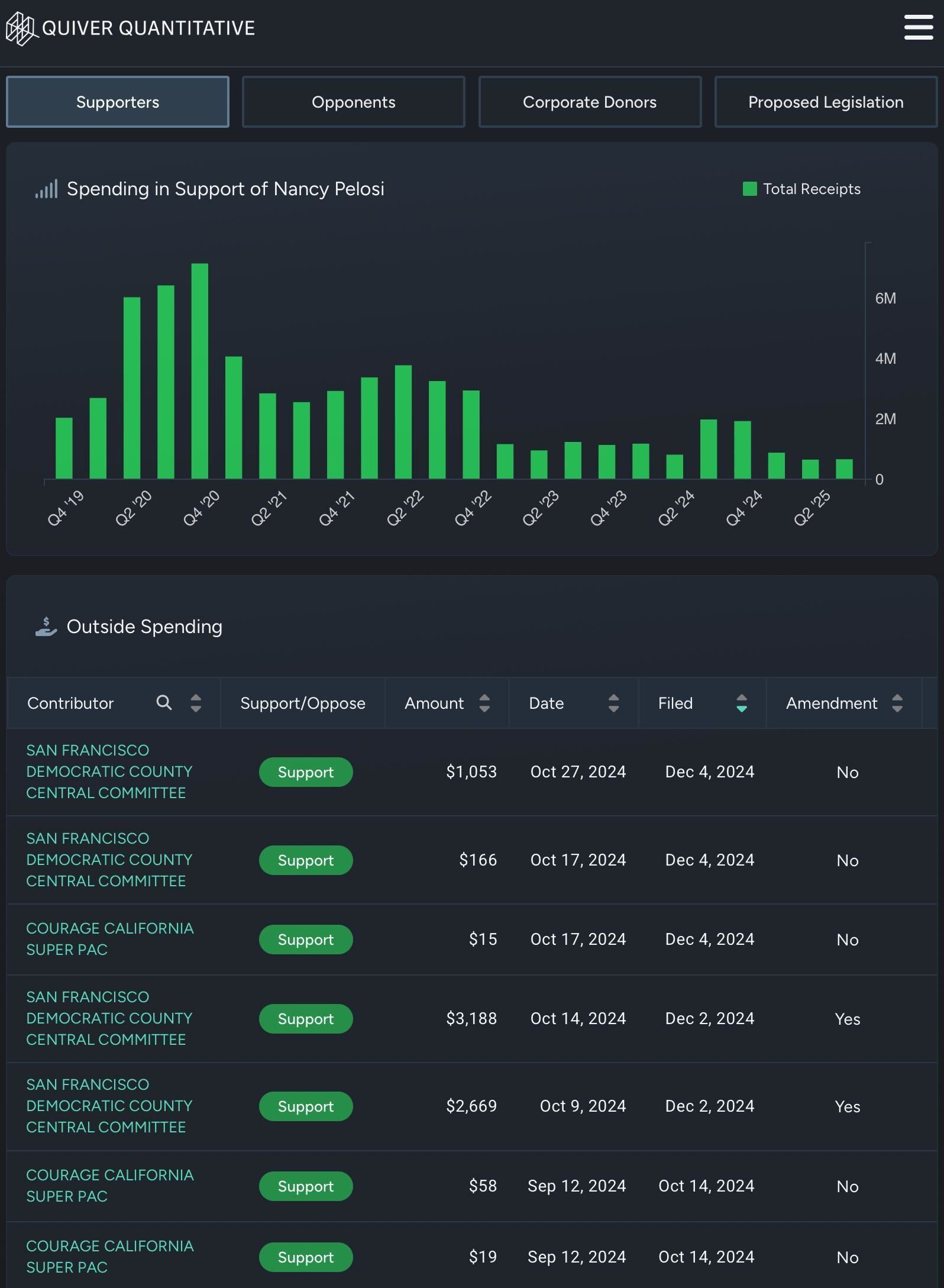 Quiver’s Politicians Dashboard just got more powerful. Our newest update introduces two data-rich views—Supporters and Opponents—giving you a comprehensive look at the financial forces shaping any politician’s campaign.