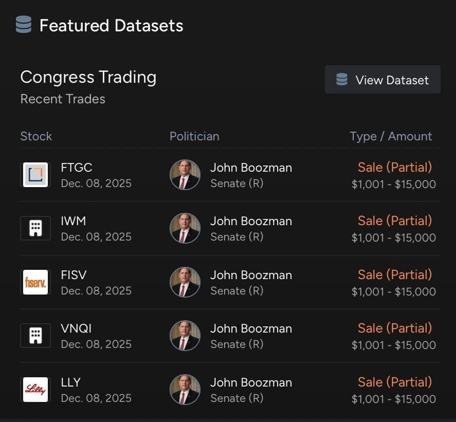 John Boozman (R) (with an estimated net worth of $3.47M) had numerous trades including (CRM), (AMZN), (LLY), (MBB) and more: